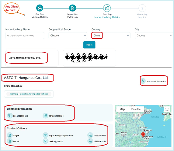 ① Register as a user on the Saber Digital Platform and create a new request. ② Add vehicle information and the Vehicle Identification Number (VIN),Choose ASTC as inspection body. ③ After the system generates an application UVCN number, provide it to the ASTC by email (ti@astcplus.com) to schedule an inspection. ④ Accept inspection quotation and arrange the request payments. ⑤ Submit the required documents and wait for the review to be completed. ⑥ Schedule an on-site inspection. After the inspection, verify the registration documents. ⑦ Issue the VISC clearance certificate.